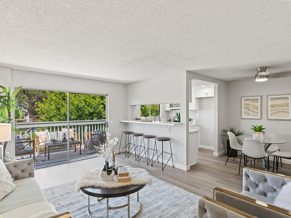 Enjoy the many benefits of community living in this beautifully-updated property with spacious balcony! Cook with ease on quartz countertops with new white custom cabinets & stainless steel appliances. Relax in the living room with a sliding glass door that lets in natural light or on the balcony to enjoy wonderful year-round weather. Spacious primary bedroom has lovely pool view & direct access to the bathroom with floating vanity & shower/tub great for relaxing. No neighbors above or below this unit! Other home highlights include new interior paint throughout, designer-selected accent walls, abundant storage, & new LVT flooring. Idyllic complex includes sparkling pool, cabana, clubhouse, beautifully-maintained landscaping, assigned covered parking space with cabinet storage, & ample additional unassigned spaces close to the unit. Top schools: Ponderosa Elementary, Peterson Middle, & Wilcox High (buyer to verify)! Prime location just 0.5 miles to CalTrain & Lawrence EXPY for commuters!
