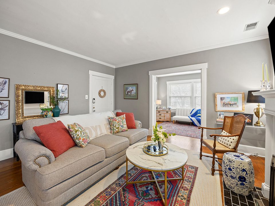 Ideally located at the corner of Victory Avenue and Richmond Road, this wonderful two-bedroom condominium offers the best of historic character and updates within a classic 1920s building. High ceilings, original hardwood floors and trim, and abundant natural light create a bright and welcoming home. Large living and dining rooms are at the heart of the floor plan, and generously-sized closets add ample in-unit storage. The galley kitchen is thoughtfully updated with exposed brick, modern cabinetry, quartzite countertops, and contemporary appliances. The bathroom retains its vintage tile floor, adding warmth and authenticity. This intimate four-unit building, the Henry Clay Condominiums, includes off-street parking and basement storage. Monthly HOA fee of $400. Walkable to Ashland Park, Kenwick Table, and the National Avenue corridor, with convenient access to downtown Lexington and Chevy Chase. A rare opportunity for low-maintenance, in-town living in one of Lexington's most desirable settings.