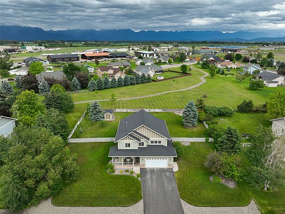 Excellent home located south of Kalispell in the Meadows at Rocky Cliff! 4 bedrooms, 2.5 baths with double garage sits on nearly one-half acre with a beautiful fenced backyard that has spectacular views of the Swan Mountains. Formal living room equipped with a gas fireplace in the corner, dining room, a second living area, breakfast nook and kitchen featuring granite countertops. Oversized master bedroom with an attached bathroom including a dual vanity, walk-in shower and a separate tub. Three additional bedrooms and a laundry room upstairs. An inviting covered porch and paved driveway attribute to the great curb appeal. Plus, mature landscaping, a garden area, storage shed and underground sprinklers. You'll enjoy the beautiful new patio in the backyard morning and night, but don't forget your s'mores for firepit area. This home is a short drive to Glacier National Park, Flathead Lake and two ski areas! Call Kerry Mann, 406-291-3131, or your real estate professional to schedule a showing.