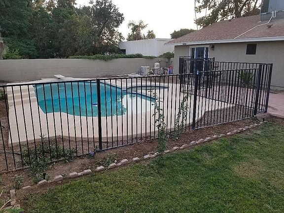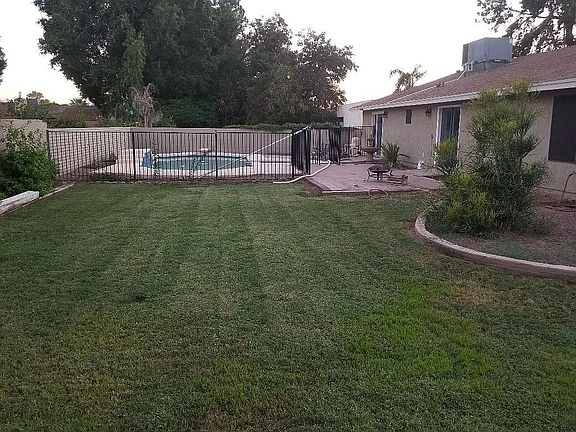 WOW! Tricked out 4 bedroom home nestled on 13,560 square foot irrigated lot with pool & spa. Kitchen with beautiful copper farmhouse sink, high end wood cabinetry, granite, butcher block island, 5 burner gas range, convection microwave, saltillo tile, cabinet lighting, & French door to covered patio & glorious green yard with fruit trees. Living room with fireplace, crown molding, private office/den, & French doors. Spacious master bedroom with walk in closet, French doors & updated bathroom. Double gates.