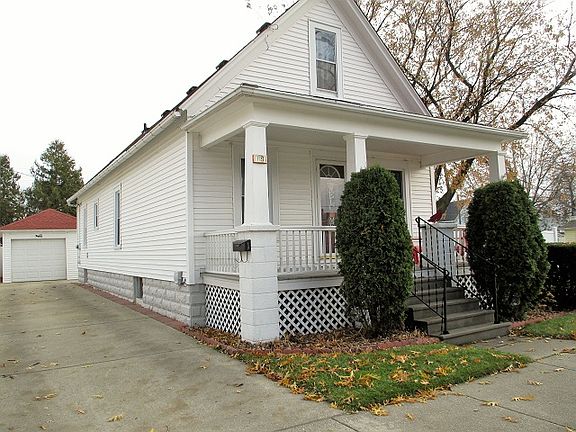 Clean, well-cared for home located close to the local amenities. Features include hardwood flooring, ceramic tile in the kitchen and spacious bathroom, kitchen with eat-in area, separate dining area, clean basement, and large attic (great for storage). Some of the laundry hook-ups still exist on the main level. Outside, there is a covered porch, patio, vinyl siding on the home and garage, and a fenced-in yard. Updates within the last 10 years or less include new shingles on the home and garage, water heater, some flooring, trim around windows, decking on porch, and more. Appliances are included. Move in and enjoy! Call today for your personal showing.