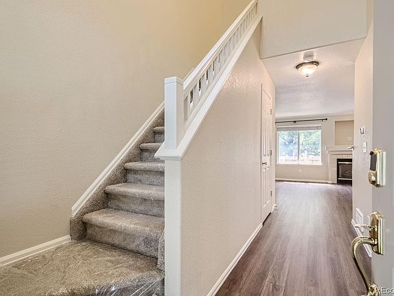 Wowsers! This is one very well cared for 3 bedroom, 2.5 bath home! You will LUV to call this place YOURS..! First, you are greeted with an elegant full length Anderson glass storm door, then beautiful luxury vinyl flooring throughout the main level with designer paint, crown molding, light fixtures and a gas fireplace! The kitchen offers a breakfast bar, and a stainless steel appliance package which includes: Refrigerator with water/icemaker, new dishwasher (2024), PLUS a brand new stove and microwave oven (2024). The laundry area and 1/2 bath is just off the front door, conveniently located for guest use. Plus, it comes with a full size clothes washer & dryer (2023) and is housed discreetly behind bi-fold doors. There is also a new water heater (2024) and the newer furnace has been serviced annually. The kitchen offers a large pantry and the entire home has newer faux wood blinds (2023) and bronze curtain rods with clips. The private patio, just off the dining area has a stamped concrete pad which overlooks the greenbelt area (NOTE: This location does NOT back to other homes). Upstairs, you will find 3 bedrooms, 2 full bathrooms, one being the ensuite bath to the primary bedroom. The designer light fixtures continue throughout and all three bathrooms include designer mirrors. The community has mature landscaping, a pool, Clubhouse, tennis courts and includes water, trash, snow removal and on-site management. This is a must-see move in ready home! Conveniently located to Buckley Airbase, E-470, DIA, I-225, Starbucks and grocery stores.