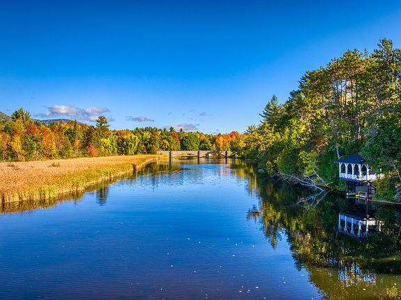 As you approach down a winding private drive, the property reveals itself with grace—apple trees dot the landscape, tall pines frame the view, and commanding vistas of Whiteface Mountain rise dramatically in the distance. It's a rare combination of mountain majesty and riverside serenity that simply cannot be replicated.