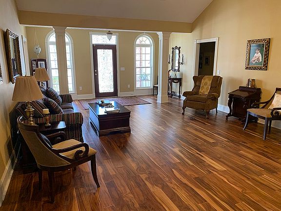 Traditional. Home is on 2.605 wooded acres. Has a 20X24 workshop. Includes a bonus room and sun room with see through gas log fireplace from living room into sun room. Large master closet. Walk in shower with double vanity and large jetted garden tub. HOA $150 annually. Custom gourmet kitchen with double oven. Custom garage storage. Large front porch. Kids tree house with ladder and slide.
