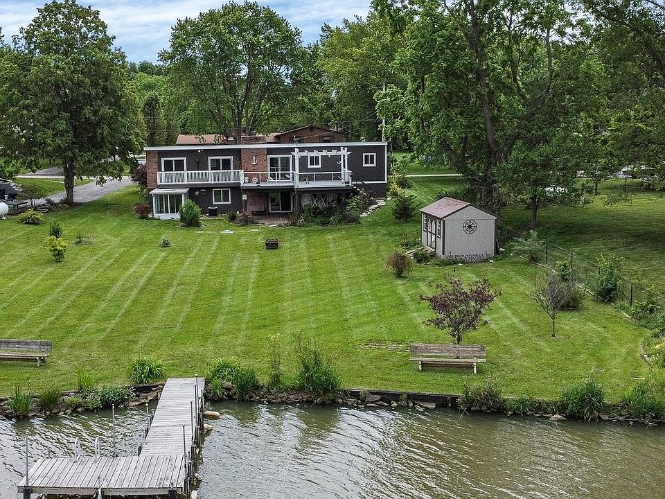 Welcome to 1127 Sylvan Shores Dr., South Vienna, OH, a charming waterfront property located in Sylvan Shores a serene private lake community. This ranch-style home features an open floor plan with 3 bedrooms and 2 baths. The main level boasts a spacious kitchen and living area, along with one bedroom and a full bathroom. The walkout lower level includes two additional bedrooms, a family room, and another bathroom. Enjoy the convenience of a 2-car attached garage with a newer concrete driveway providing ample parking. Relax and take in stunning sunsets from the large back deck. The expansive yard leads to a private dock, perfect for enjoying all the lake activities. Experience tranquil lakeside living at its finest in this delightful home.