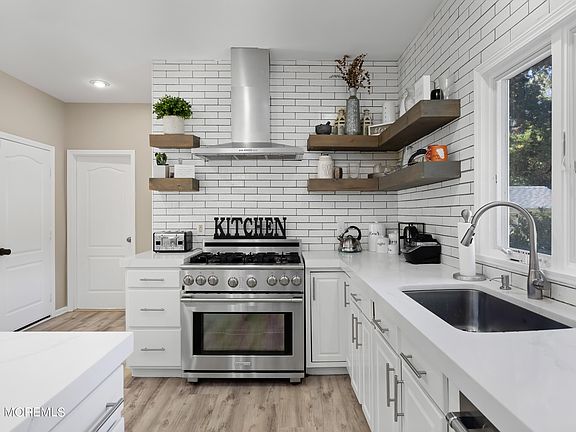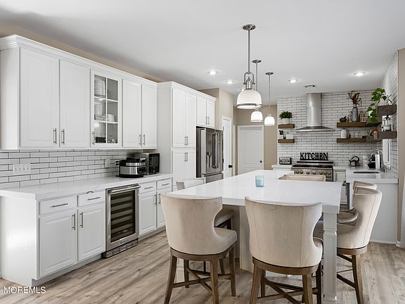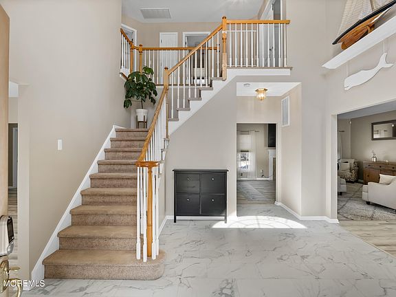 Welcome to your dream home located at 1127 Toms River Road in Jackson, NJ! The charming front porch invites you to sit and enjoy the peaceful surroundings. Step inside to a grand two-story foyer, where soaring ceilings and an abundance of natural light create a bright and airy atmosphere. The main level boasts brand new vinyl flooring flowing throughout, preserving oak hardwood beneath.The spacious living room is a true highlight, featuring a wall of windows that flood the space with natural light. Enjoy the gorgeous gas fireplace perfect for cozy evenings. The open layout flows seamlessly into the stunning kitchen, where an oversized quartz island provides ample seating for 6+ and plenty of preparation space. With newer white cabinetry, subway tile backsplash, stunning floating shelving and newer stainless steel appliances make this kitchen both beautiful and functional. Recessed lighting and pendant fixtures add a modern touch, while a sliding glass door offers easy access to the expansive backyard. The oversized dining room, with its elegant light fixtures, is perfect for hosting dinners. A conveniently located half bathroom and laundry room complete the main level. Upstairs, the spacious primary bedroom awaits, with plush carpeting, soaring ceilings, and a spacious walk-in closet. The en-suite bathroom is a spa-like retreat, featuring double sinks with granite countertops, a jacuzzi tub, and a walk-in shower. Three additional bedrooms, each with walk-in or large closets, provide ample space for your storage needs. The hall bathroom also features granite countertops and modern finishes. The full basement offers a versatile bonus room that can serve as an office, gym, or playroom, along with plenty of additional space ready to be finished. Outside, the sprawling 1-acre lot is a private oasis. The fenced-in backyard includes a pool, patio area, and plenty of additional space perfect for outdoor entertaining. A shed with electricity adds extra convenience, and the 2-car garage provides ample storage. There is also a new roof and water heater. Meticulously maintained, this Jackson gem offers the perfect blend of luxury and comfort. Don't miss your chance to make it yours, come see this beauty before it is sold!