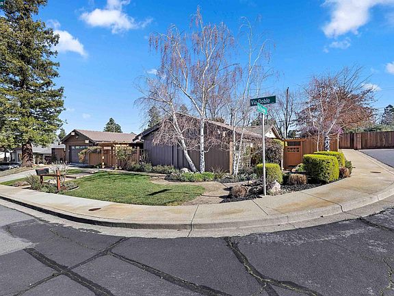 Nestled on a charming corner lot, this exquisite single-story home offers both privacy and tranquility at the end of a quiet street w/ minimal traffic. A beautifully enclosed front courtyard, complete with a serene fountain, sets a warm and inviting tone. Inside, gleaming hardwood floors, fresh interior paint, plush new carpeting, and modern lighting come together to enhance the home's timeless charm. Expansive kitchen shines with stainless steel appliances, generous counter space, and abundant cabinetry, perfect for cooking and entertaining. Primary suite offers direct access to the spacious backyard, creating a seamless indoor-outdoor retreat. Bathrooms have been beautifully updated with elegant new vanities, sinks, faucets, and mirrors. Thoughtful finishing touches, including white plugs and switches, contribute to a polished, cohesive aesthetic design. Lushly landscaped backyard is a private retreat, showcasing enclosed garden spaces, a lemon tree, colorful florals, a charming deck with a trellis, and shed for extra storage. A powered retractable side-yard awning adds extra comfort and convenience. Situated near top-rated schools, scenic hiking trails, parks, and shopping centers.