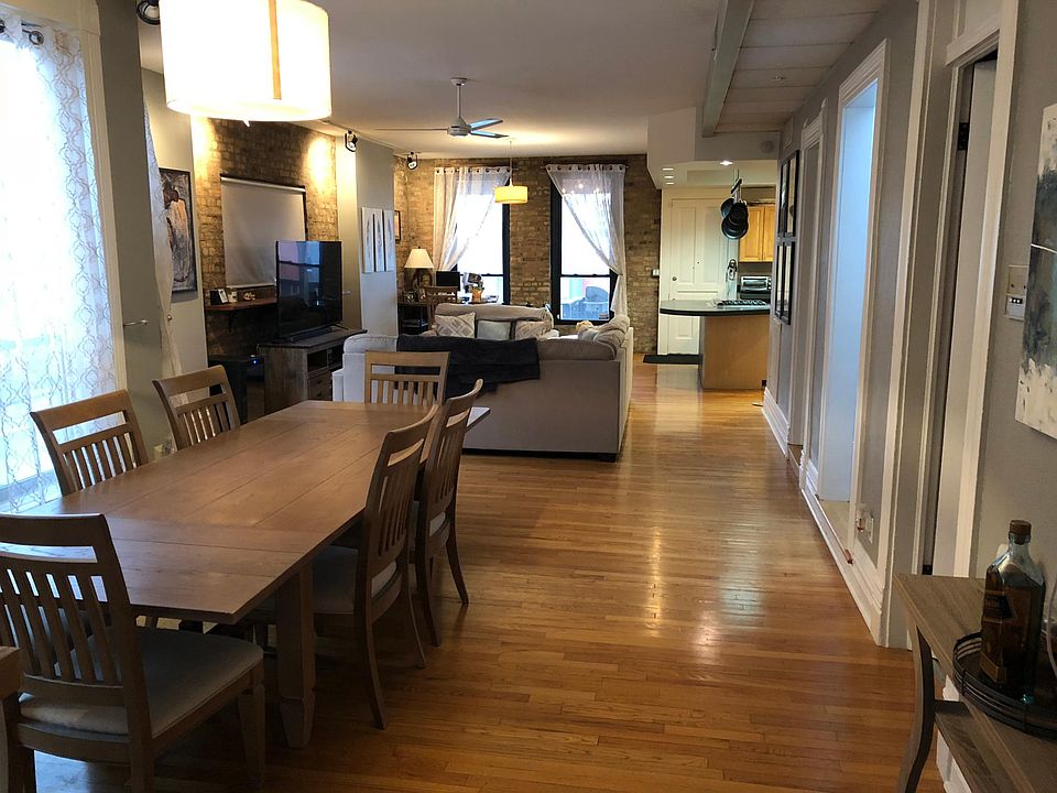 Spacious 2 bedroom, 2 full bath apartment located on W Madison St, in the heart of the West Loop. 3rd floor unit, in a three story building with only one other apartment located on the second floor and a retail shop on the first floor. Apartment has a great private back deck, along with access to a shared roof top space. Spacious, open floor plan in the living area, very good sized second bedroom and large master bedroom. High ceilings throughout the unit, with several walls of exposed brick providing a lot of character. 1 dedicated parking space included (heat concreted to melt snow in the winter). Unit is also pet friendly. This is a fantastic location, walkable to all of the shops, grocery stores (Marianos, Whole Foods, and Target) and wonderful restaurants of the West Loop (Randolph Street) and downtown. Less than .5 miles from the Morgan stop on the Green and Pink line. Owner pays trash and sewage.