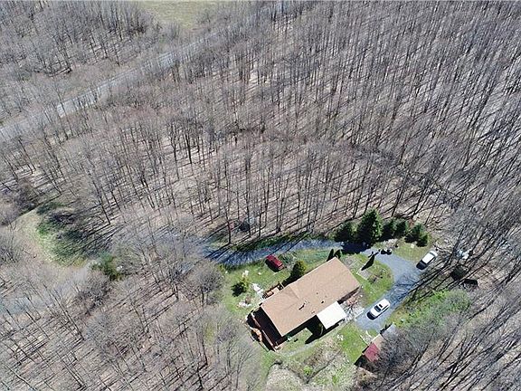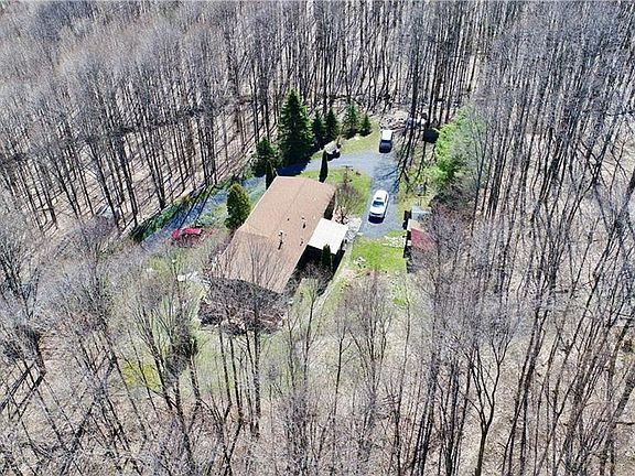Get away from it all at this home nestled in the woods! The house sits between two spring-fed ravines so you'll always hear water running. There are about 2,500 maple trees on the hillside property and would be a perfect place to make maple syrup. The house is fairly open with a large kitchen/great room combination which is next to a good-size living room. The kitchen offers a great workspace and a kitchen sink that looks out toward a waterfall. There are many windows and is filled with natural light. A mud room is at the back of the house as is the laundry. There are plenty of closets for storage in this 3 bed, 2 full bath house. There's a chicken coop waiting for chickens and a fenced area for animals (Emus used to occupy it). The stone driveway is long and curved and the house is not visible from the road. The current owner is a professional contractor and has improved the property; a new owner will want to put their touch on it to make it just right for them and this property is priced for that. Great for hunting, gardening, homesteading-this property will make you not want to leave! This property is in the Marcellus School District, Town of Spafford, & Skaneateles address.