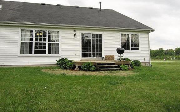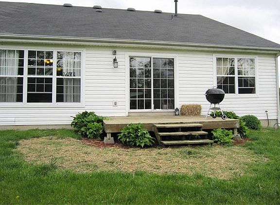 One Story Villa located in Millstadt school district - move in ready 2 bedroom /2 bath with open floor plan. Foyer entry. Vaulted ceilings. Large living room & dining room area. Kitchen features angled peninsula & appliances included. Breakfast area has sliding doors to deck. Double doors lead to Master Bedroom suite with Trey ceiling, 8 x 7 walk in closet, luxurious full master bath with dual vanity sink, separate shower & garden tub. Full unfinished basement is waiting for you to finish, includes plumbing rough in for additional full bath. Enjoy the quiet peaceful spacious backyard that backs up to trees. 2-Car attached garage. Passed city inspection. New roof 2012. 1-Year Buyer home warranty included.