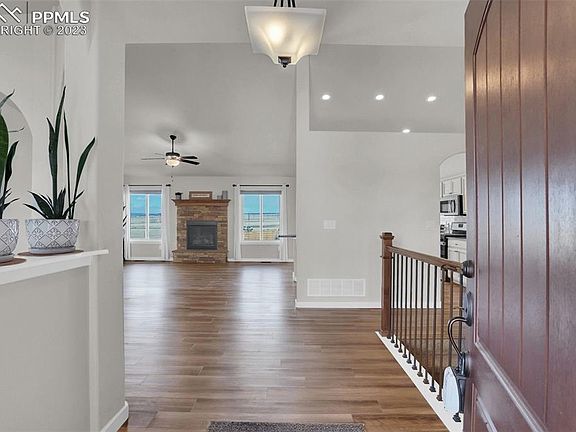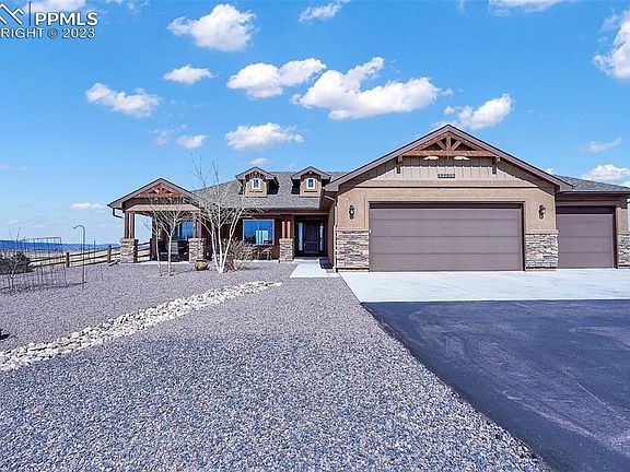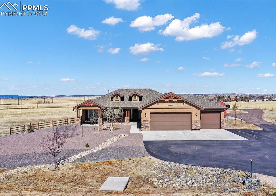Come enjoy country living at its finest on 5 fenced acres, zoned for horses, just waiting to be your dream home! Exceptional views of city & front range mountains with unobstructed views of Pikes Peak! This property is located "close-in" just minutes from Colorado Springs city limits and Falcon with shopping, restaurant amenities and employment centers-just within a short drive. Don't miss this beautiful-Ranch style home with over 4000 sf/3 car garage and main level living in immaculate condition-built in 2018. Exterior of home has stucco/stone; expanded front covered-porch; rear-deck & patio + additional 3rd-large covered patio-all Great for entertaining! Additional fenced rear yard-great for animals or enjoy the current gardens/planters & small green-house. This property has extensive landscaping improvements already completed with an abundant of planted trees/shrubs/drip system/rock landscaping/concrete walkways and expanded front-concrete & paved driveway + enjoy the large RV Pad-ready to store your toys! This wonderful home offers 3 bedrooms on the main with owner suite on one side and 2 additional bedrooms and full bath on the other side of home + additional powder bathroom and a separate laundry room! The Kitchen includes a large bar area/granite slab counters/stainless steel appliances/gas range with a nice kitchen-nook/dining-area leading to rear deck. This desirable open concept offers great flow from the formal dining room into the cozy family/great-room with gas fireplace & vaulted ceilings. There is durable-Luxury Vinyl Plank flooring and many extra windows throughout to take in the incredible views. All bathrooms have granite vanities. Bring your ideas for future expansion into the mostly unfinished basement with 9' ceilings, and garden level windows with mountain views-*there is a full bathroom already completed in the basement!! Central AC. Over-sized garage + insulated & drywalled with a rear service entry door. Enjoy and thanks for showing!