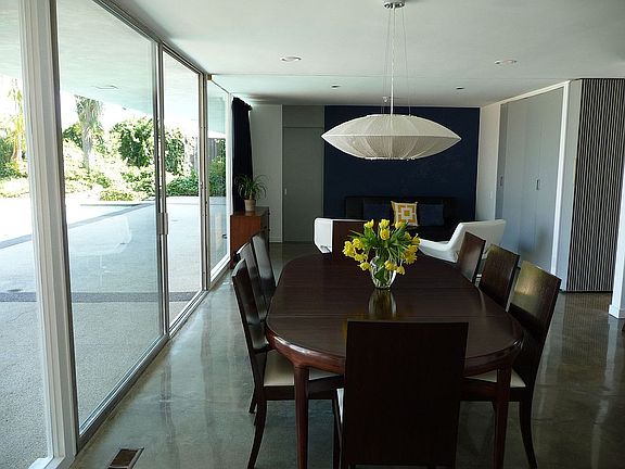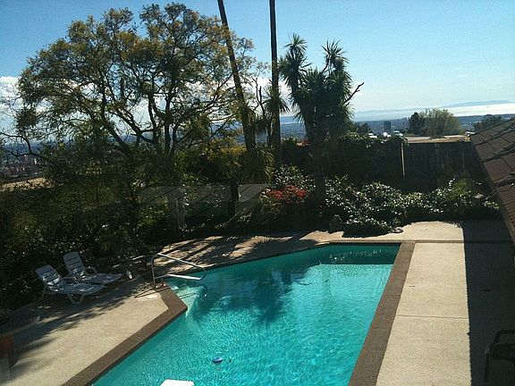 Enjoy breathtaking city views, when you work from home! This mid-century architectural home is situated on top of a hill in Bel Air, on a large one acre lot, overlooking the Bel Air Country Club. The 3273 sq ft living space offers 4 bedrooms with en-suite bathrooms, 1 powder room, gourmet kitchen with open concept dining room and a two-story dome-shaped living room which provides a special setting for entertaining. The home is freshly painted, has polished concrete floors in common areas and bathrooms and a new carpet in bedrooms. A fireplace in the living room, a 2-car garage and a private swimming pool with diving board make this place complete. Offered unfurnished, the use of present furniture is negotiable. Great location with only a short drive from Sunset Blvd.