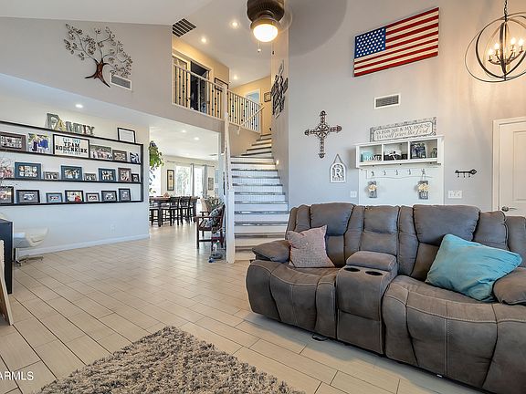 Gorgeous Home! You will not want to miss out. Recently remodeled 4 bedroom , 2 1/2 bathrooms,master bath has jetted tub, upstairs room or office/den has French doors to the balcony with spiral stairs to the backyard oasis. RV GATE and Parking with 500 amp electric for RV plug in, plus 3 car garage and OVERSIZE yard, covered patio , ramada , diving salt water pool, outside bbq and fireplace and ALL with NO HOA. Gourmet kitchen has stainless steel appliances, granite counter, marble tile backsplash, slide out drawers and wood cabinetry with updated hardware. Spacious, OPEN, cozy wood burning fireplace within Family room. Wrought iron railing with sweeping staircase to the upstairs. Don't delay. this will not last long.