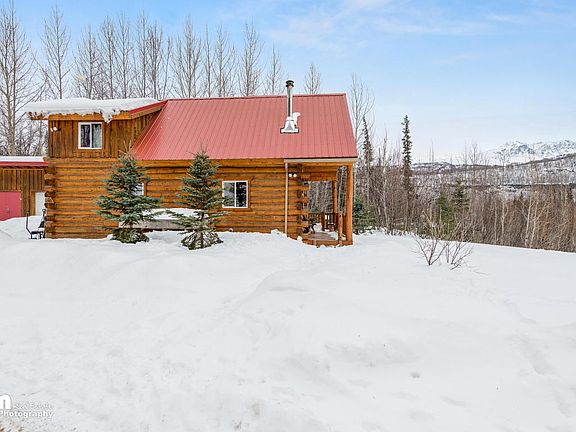 Cozy log home with a separate 360 sqft dry cabin, detached garage shop, beautiful yard and amazing mountain views. Home features the simple living space of a true log cabin with modern finishes to make for a perfect home. Master bedroom down with a spacious walk-in closet and a loft style room upstairs. Newer 2017 Quadrafire wood stove heats home perfectly and it has an oil radiant heat system. Whether your looking for a hideaway weekend cabin or a cozy home outside of town, this place is a must see. With 1.5 acres you have plenty of room to build even more or expand as well. Location is surrounded by ski trails, hiking, a beautiful lake and Amazing mountain views. Commute to Palmer is less than 20 minutes. Majority of roads are maintained as well.