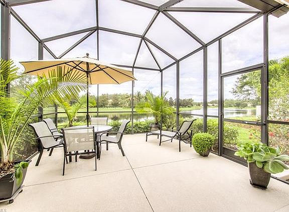 Beautiful 2 bedroom plus den home with gorgeous private lake view and expanded lanai with roll down hurricane screen. West exposure with lake view and no homes in the background make for spectacular sunset views. Ideally located a short walk to the Bridgetown amenity center. This home offers a great open floorplan with spacious master and guest bedroom. Entire home has been wonderfully decorated with custom window treatments, updated ceiling fans, upgraded light fixtures and much more. Additional premium upgrades include 42" staggered cabinets, granite counter tops, upgraded tile and more. The lanai area has been completely redone from all new polyester screens, newly painted floor, all bolts replaced with rust free screws and all new door hardware. Expanding the lanai back and not across the entire back of the home provides a beautiful unobstructed view from the dining room and master bedroom. Bridgetown is one of the premier communities in SWFL. Impressive amenities include resort style pool and spa, fitness center, outdoor bar, bocce ball courts, tennis courts, catering kitchen, amenity center with multi-purpose room and much more.