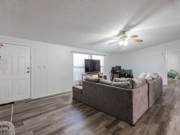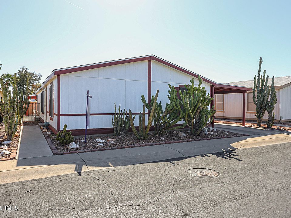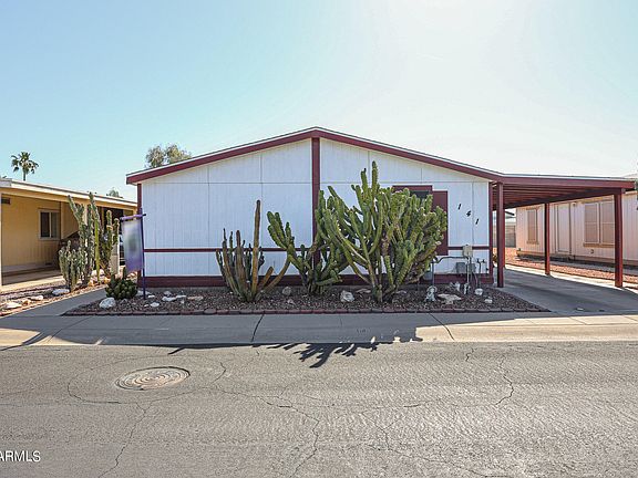 Solar will be paid of at CLOSING. Big win for the new owner. This charming mobile home, nestled on owned land in an all-ages park, offers the perfect blend of convenience, comfort, and community living. Boasting a prime location, this residence provides easy access to all that Peoria has to offer, including shopping, dining, entertainment, and outdoor recreation. The home features laminate wood flooring throughout, adding a touch of elegance and easy maintenance. Spacious primary bedroom provides a peaceful retreat after a long day. The primary bathroom boasts a large tiled walk-in shower, offering both style and convenience. Step outside to the inviting paver patio adorned with a pergola, perfect for al fresco dining or relaxing in the Arizona sunshine.