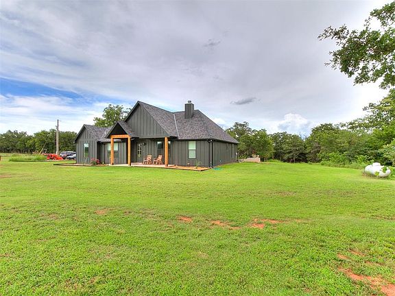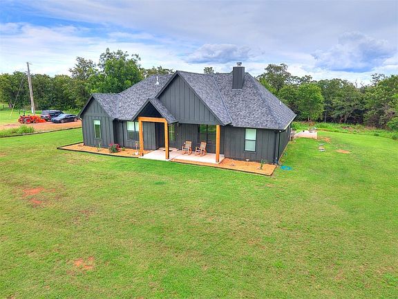 Rustic charm meets modern elegance on 10 secluded acres. This 2,703 sq. ft. home welcomes you with 3 bedrooms, 2.5 bathrooms, and a flexible bonus/media room that is simply perfect for cozy nights or hosting guests. The open concept layout invites connection, with a warm, inviting flow between the living and kitchen spaces. Handpicked flooring and lighting add character, while the bedrooms offer peaceful retreats and the baths balance rustic textures with refined finishes. Fully enveloped in spray foam insulation, the home offers exceptional energy efficiency year-round. Step outside to your fenced countryside haven, and YES, it is complete with a tranquil pond, wide open skies, and room to roam. Whether you’re sipping coffee on the porch or gathering around a firepit under the stars, this property is a quiet escape with timeless style.