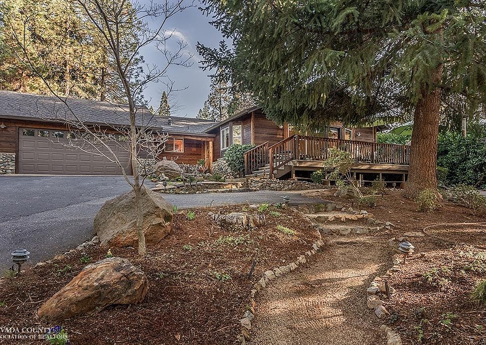 An Impeccable Via Vista home that is a joy to live in! Warm woods, river rock and brick embellish this custom design with access from each room to exterior patios & paths awaiting spring's bounty. Remodeled by Wright Built and beautifully maintained, each room delights! Spectacular living room with peeled logs hint of the Southwest with french doors and a built-in window seat. The Sun Room dazzles... with abundant windows and skylights. A Custom Closet offers ultimate organization in the Master Bedroom. Efficient Kitchen has new granite and S/S gas stove. VERSATILITY galore in the family room: Potential Guest Quarters with its built-in media center, wonderful Murphy Bed & new bath/ a studio-office area with a private entrance/ or spacious family room. Low maintenance & professionally landscaped yard with charming water feature & potential hot tub area. Just minutes to everything, this central location makes for easy living in one of Nevada City's most popular areas.