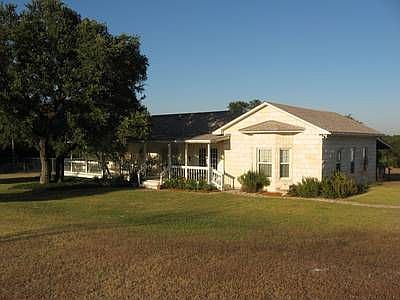 u/C -- A HAPPY ALTERNATIVE TO A real country jewel tucked away on 2.5 acres. White rock home surrounded by large native trees. Watch the deer roam from the large backyard deck or sit on the front porch and enjoy the shade of a massive Oak. Interior has been updated. Wood burning stove. 30x30 metal building with overhead doors. Carport with concrete pad. Cedar post fence with automatic gate. Solar panels.