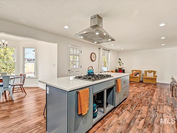 Newly renovated with a dream kitchen fit for any chef! Kitchen features SS double ovens and six-burner gas range with elegant cabinetry and hardware, quartz countertops, and custom pantry with swing out spice shelving, easy to find what you need! Other upgrades include waterproof plank flooring throughout the entire home and a new HVAC system installed June 2021 with UV light air purification system! Enjoy summer evenings in the North facing backyard on the covered patio or relax on the covered front porch. Home has RV parking, double-hung windows, xeric or water wise landscaped front yard with drip irrigation in the raised garden beds. Three separate living areas, plus six bedrooms, offering ample room for an office, home gym, or games and hobbies! Convenient and central Boise location. No HOA! Possible VA assumption option.