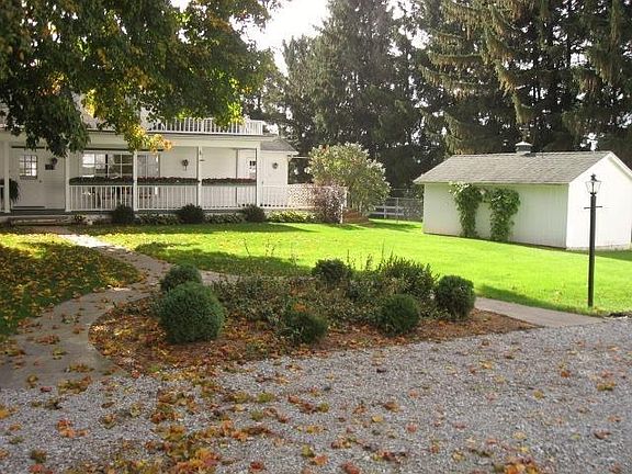 Absolutely spotless! This large, 4 bedroom, historic home has been nicely upgraded over the past few years. Over 3,400 sq ft of living space. Lots of character throughout. Modern oak kitchen with solid surface countertops, tiled backsplash, and newer appliances. 4 fireplaces. Unique master bedroom with lots of built ins, sitting area, and balcony. Partially finished basement. Large deck and covered porch for outdoor entertaining. Outbuildings are impeccably clean. Set up for horses with two pastures. Come take a look! You'll be impressed with all it has to offer.