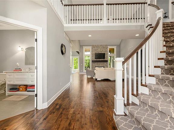 Beautiful custom built home. Everything has been thought of here! You'll love the SECRET BOOKSHELF DOOR that leads you into your new theater room with theater chairs, surround sound and projector all staying with the property. Two beautiful covered deck/patio areas with see-through stone fireplaces on both levels. All appliances stay! You'll love the privacy with the flat backyard backing up to full grown trees. Laundry room has convenient entrances from the hall and the master bedroom closet. Oversized three car..