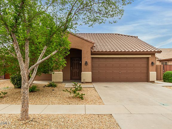 Our Preferred Lender is offering a 1-0 buy down on this property for qualified buyers! Discover the charm of this fantastic single-level home in C W Ranch! Easy access to the freeway and just minutes from Luke AFB, Glendale/Peoria, and downtown Phoenix. Offering 3 beds, 2 baths, 2-car garage, & a low-care landscape. The inviting interior showcases tons of natural light, a neutral palette, and tile floors w/carpet in bedrooms. You'll love the spacious open layout made bright & airy by the vaulted ceilings and sliding doors to the back! The kitchen boasts SS appliances, granite counters, ample wood cabinets, a pantry, track lighting, and a 2-tier peninsula w/breakfast bar. The large main bedroom has an ensuite with dual sinks & a walk-in closet. Washer & dryer included! The serene backyard features a covered patio to relax & a putting green for golf enthusiasts. Welcome home!