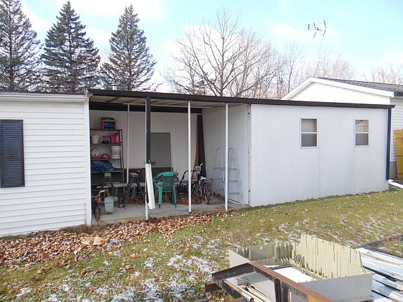 Affordable year round living or weekend getaway close to the lake and state boat dock rentals. 3 bedroom, 1 bath mobile home on deeded land - no lot rent! 1 Parcel number but it's a large 105x74 lot (3 lot numbers). Plenty of living space due to a built on 'family' room and a recently added 3rd bedroom. Special amenities include a covered breezeway to a large workshop outbuilding with electric, a storage shed, your own private well and a 'U' shaped driveway for easy in and out.