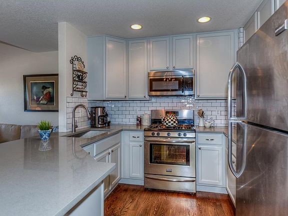 Wow, check out all of the upgrades in this wonderful townhome! Sellers were not planning on moving and put in over $45,000 of improvements. In the kitchen you will find Quartz counters with beautiful subway tile backsplash and stainless steel appliances. Open living room with lots of windows and Ledgestone stacked tile fireplace surround with wood mantel. Hardwood floors on main level and stairs. All bathrooms have been remodeled with tile floors and subway tile tub/shower surrounds. Second floor has a large master suite with vaulted ceiling and an additional bedroom with separate bathroom. Basement has a nonconforming 3rd bedroom (no door) which could also be used as an office or family room with a full bath and laundry closet. Large 2 car garage with lots of storage. Front yard with patio area and fenced in lawn area. Close to neighborhood trails and lake. Conveniently located near shopping and public transportation. You will not be disappointed!