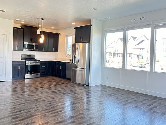Absolutely charming townhouse in the beautiful Highland Park neighborhood of Daybreak in South Jordan. This property is a desirable corner unit facing the park. It is also conveniently located close to shopping centers, schools, public transportation, Mountain View Corridor, and the soon to be new Downtown Daybreak including the Bee's Stadium. Park across the street includes pickleball courts, playground and Thursday evening food trucks. Once you walk into the home, you are welcomed with lots of natural light and spectacular mountain views. Open space bleeds directly into kitchen area with Quartz countertops and stainless steel appliances. Rustic faux wood flooring that is super easy to maintain and a quaint patio to enjoy the views and entertainment. Main level has a half bath for guest. Both bedrooms and laundry are upstairs. Master bedroom has high end cellular shades. Attached bathroom has double vanity and large walk-in closet. Unit has a large two car garage with overhead storage. Home comes with Vivint Home Security and Smart Home System for peace of mind. Keep an eye on your home while you are away. Temperature control, door control including garage door. HOA is covered by owner and allows you access to all amenities: Pools, gym, Oquirrh Mountain Lake kayak and paddleboards, summer concerts, etc. Owner will allow small dogs with renters insurance and pet policy included, with deposit. No smoking allowed. One year lease minimum.