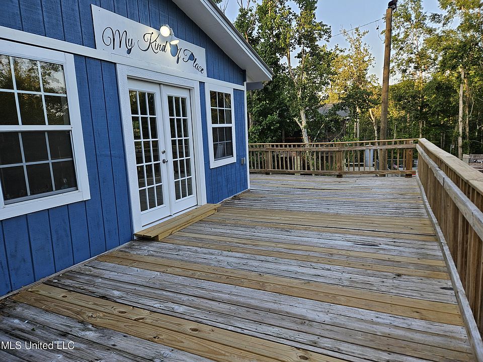 Fresh paint, new flooring, and new appliances (on order) showcase this charming riverfront home with a wraparound deck. The side deck gives a separate area off the primary bedroom while the huge front deck gives spacious room and gorgeous views of the riverfront and front yard. As you enter the home you find an large living room that opens to the spacious kitchen and dining room. Kitchen has hardwood cabinets and granite countertops adorned with new stainless appliances to include a free standing stove and hood, dishwasher and fridge. Kitchen is large enough for you to add an center island. Kitchen opens to dining room that can seat up to 8 people. As you go down the hall, to your right is a large laundry with washer and dryer hookup. The hall bath has a bathtub shower combo and vanity with granite countertops and a Kohler toilet. Next is the nice sized second bedroom which is next to the spacious primary bedroom which has it's own private entrance from the side deck. The oversized lot has tons of covered area underneath the house for entertaining and parking you cars. Though in a flood zone, seller elevated the home so that flood insurance is just over $800 per year and is transferable to the buyer (just renewed May 2024). Great primary or secondary home and the area allows for Air BnB. Don't wait too long or you'll miss out on the charming home!