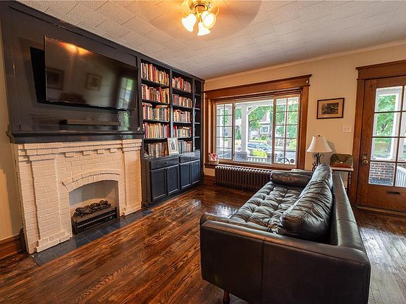 Come and experience the charm of this inviting home that effortlessly combines comfort and convenience. The spacious front porch is perfect for relaxation. Inside, the living room boasts shining hardwood floors, custom bookcases, a cozy fireplace, and French doors leading to the dining room. The modern kitchen features stainless steel appliances, elegant granite counters, and beautiful cabinetry. Nearby, a mudroom with a powder room opens to the backyard, complete with rose gardens, lush flower beds, and a children's playhouse. Upstairs, three generously sized bedrooms share a striking tile bathroom. The home also includes a rear garage and a full basement. Schedule your appointment today to see this remarkable home. Showings start with the Open House on 6/30 from 1 to 3 p.m.