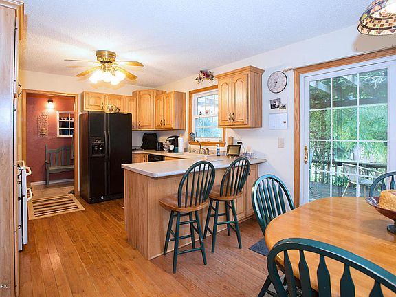 Walk to schools, preforming arts center and any school sporting events! This three bedroom two bath features over 2,000 Sq. Ft. of generous living space, yet preserves a cozy feel with its split-level design. The main level boasts an attached two car garage an a mudroom that flows to an updated eat in kitchen (which includes appliances) and has loads of work space, hickory cabinets, snack bar and radiant floor heat. The kitchen slider leads to a large deck with vine covered pergola overlooks a s pacious fenced back yard that allows plenty of room for pets/children. An inviting light-filled living room finishes the main level. Upstairs there are three ample sized bedrooms and a family bath. Downstairs features a large family room with a beautiful brick fireplace, full bath and laundry area. No need to worry about the roof and windows, those have been replaced also. This lovely home is move-in ready, call today for your private showing.