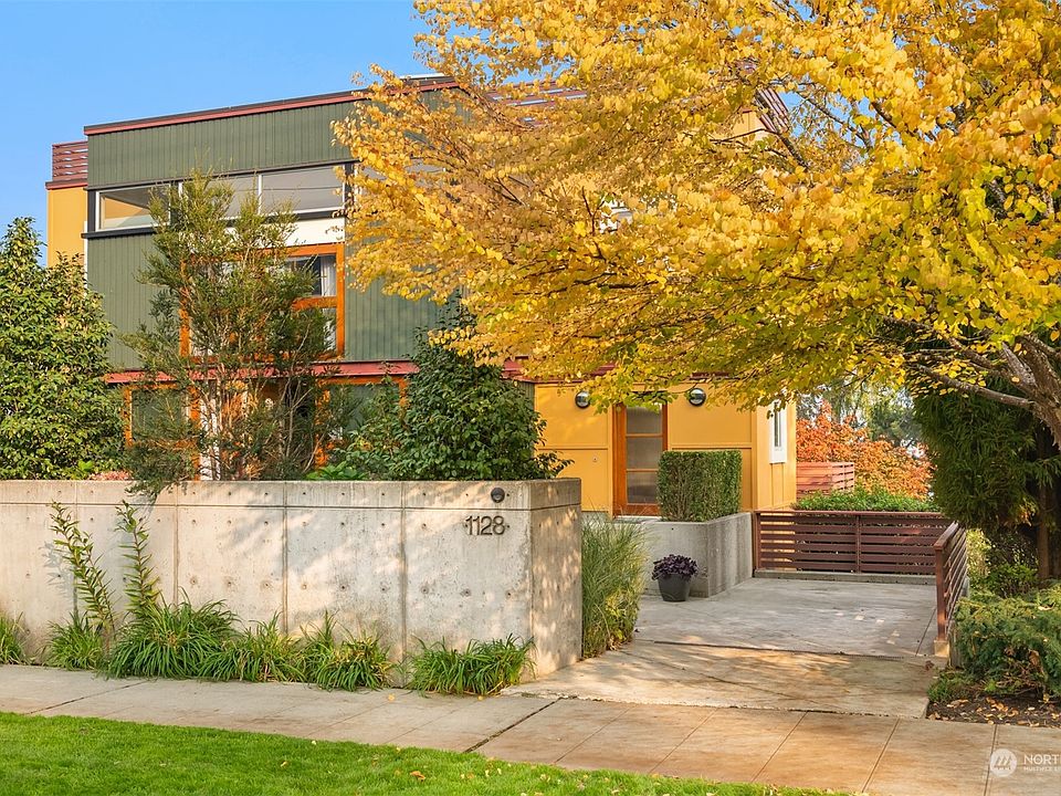 Thoughtfully designed by AIA award winning design team, Arellano / Christofides (now Space & Craft Co. in Walla Walla). Perched on a corner for privacy & view, in the heart of Leschi. Compelling hard scape & a private garden bring the outside in. Designed for indoor/outdoor living, flooded w/ light, open floor plan, barn doors & double height ceiling in the dining room bring the outside in. A second set of barn doors above, create privacy for the mezzanine & bedrooms. Flexible lower level could be an en-suite guest space, media room or home gym w/spa bath. Views from the living room & balcony, the primary suite & 50-yard line water views from the rooftop terrace. Imagine the possibilities.