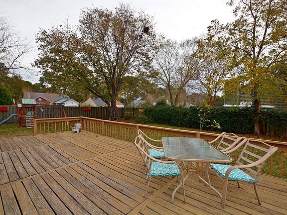 Welcome to this charming, one-level three bedroom home located in the heart of James island! Enjoy living just ten minutes to Folly Beach and downtown Charleston, with neighborhood convenience to shopping and restaurants. 1128 Bellwood is situated on a large corner lot with mature trees, flowering plants, and large sweeping front and rear yards. The airy living room is open to the kitchen and dining area and features a vaulted ceiling, wood burning fireplace, wood floors and loads of natural light. Sliding door in the Living Room opens to the spacious deck and fenced back yard. The kitchen offers sight-lines and flow to the Living Room, allowing for conversation during meal preparation. Roof replaced in 2010, windows in 2009. Random width hardwood floors in LR, DR, foyer and hall. Two bedrooms, full hall bath and convenient hall laundry are to one side of the living area, while the master bedroom with half bath is located towards the rear of the home. The whole backyard is surrounded by a privacy fence, making it ideal for entertaining - accented by the Carolina Jasmine, hydrangeas, climbing roses, butterfly bush and a fig tree. The garage ( with epoxy coating on the floor) and oversized parking pad provide plenty of space for vehicles and toys. Wood floors in main living areas replaced in 2011. Roof replaced in 2010 and windows in 2009. Freshly painted cabinets, new dishwasher and new hardware in kitchen.