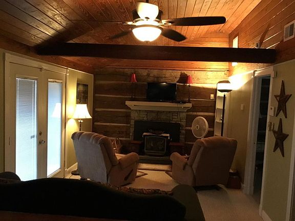 Lake Getaway Bungalow offers a seasonal lake view, fireplace in the living room, vaulted ceiling and a nice deck. This 2 bedroom, 1 bath home will qualify for 100% financing. The furnishings convey with property, except the television in the living room. Owner Agent