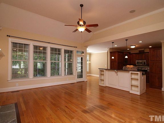 Spacious Ranch Floor plan. Better than New Construction with all the Upgrades. Spotless Custom Home with Hardwood Floors, Custom Bookshelves, Granite Counter tops, 42' Cabinets, SS Appliances, Master Bdrm Features Trey Ceiling, Surround Sound, Jacuzzi Garden Tub, on a Large Wooded Corner Fenced Lot. Sprinkler System, Screened Porch, Sealed Crawlspace. Office can be 4th Bdrm. Great Raleigh location. Community Pool .