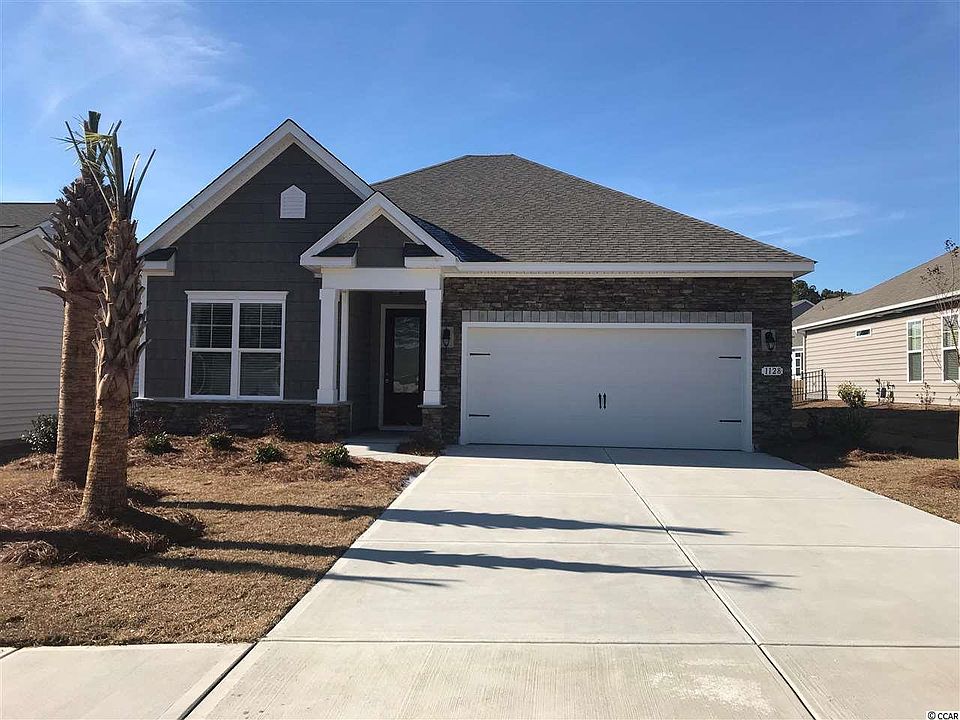 **NATURAL GAS**. This home features a covered porch and a living room extension. Included in the price of the home are the following features: engineered Quick Tie framing tie-down, architectural shingles with 30 year warranty, gas fired furnace, 50 gallon gas high efficiency water heater, 7x20 tile hardwood look floorings in all main level living, dining and kitchen areas, tile in bathrooms and laundry areas, Mohawk Stain-Resistant Carpet with 6lb pad in bedrooms, Designer Maxim lighting package, drywall paint-ready finish garage, crown molding in main living areas, master bedroom and tray ceilings, 3 1/4" colonial cased windows and doors, 5 1/4" base boards throughout home, pre-wired for ceiling fans in living room, all bedrooms, ventilated shelving in closets and pantry, smooth ceilings, Legacy 36" staggered maple cabinets with molding and hardware, quartz countertop in kitchen and bathrooms, tile backsplash, pendant light pre-wire over kitchen island, double bowl stainless steel sink in kitchen, stainless steel Frigidaire appliances (range, dishwasher, and microwave above range), 1/2 HP garbage disposal, icemaker hookup, 3 phone lines, 5 cable outlets, dual vanities in master bath, raised vanities in all baths, plate glass mirrors above vanities in bathrooms, Moen faucets, water saver elongated toilets, exhaust fans in all baths, and two exterior carriage lights at garage. Golf cart ride to the beach and access to 6th Ave South from neighborhood. Note: Pictures shown are not of actual home being built they are of the model home, these are used for only illustrative purposes to show what the home layout will look like. Measurements and sq ft. are estimated and not guaranteed and should be measured by buyer once home is completed.