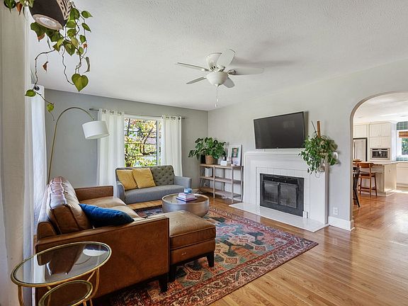 Step into this bright bungalow on the charming tree-lined streets of the Hutton neighborhood! This updated 5-bedroom, 2-bath home boasts 2,664 sq ft with hardwood floors throughout the main level, updated lighting, and a cozy wood-burning fireplace. The living room flows into a light-filled, fully remodeled kitchen featuring white Huntwood cabinets, quartz counters, SS appliances, gas range, brass cabinet pulls, oversized butcher block island, built-in espresso machine, open shelving, & pantry. A private hallway leads to 3 bd & a remodeled bathroom w/ a custom vanity. Basement w/ an updated 3/4 bath, ample storage, egress bedroom, and a versatile 5th bedroom with fireplace that can also serve as a rec room. Recent updates include new exterior door hardware, fresh exterior paint, tankless water heater 2018, new roof 2016, vinyl windows, & updated electrical. Fenced yard with sprinklers, storage shed & 2-car carport with alley access. Enjoy the cool evenings on the covered back patio or by the fire pit!