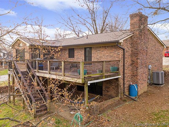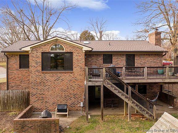 ***OPEN HOUSE, Sunday, Feb 19 from 2 - 4*** Beautiful, all brick, sprawling ranch in New Albany! Great home on corner lot with full finished basement. Lots of updates: roof (new in '22 w/50 yr transferable warranty), gorgeous Picasso hickory wood flooring throughout the main level ('19), upgraded Andersen windows ('18, transferable warranty), gutters ('22), large composite Trex deck. Main floor has 3 bedrooms, 2 full baths, huge living room, great kitchen space, awesome dining area, tons of natural light & additional flex room great for a private office or a nonconforming 4th BR (no closet). Bsmt is finished with large family room, laundry room, 1/2 bath, wet bar area, flex space (craft area), walks out to great back yard & covered patio that's rain proofed. Oversized 2 car garage in the bsmt with EV outlet for charging your vehicle up. Play set out back & front porch swing both stay. Additional storage room off of garage as well. This home has so much to offer! Call today for your private showing.