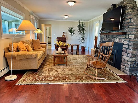 . A fantastic ranch style lake home for all seasons. All municipal services, exceptional lake frontage with large grassy area adjacent to walk in beach and totally rebuilt dock. Three bedroom suites each with private bath, great room with stone fireplace & brazilian cherry floors, eat in cherry kitchen with granite countertops,study/den, enclosed side porch perfect for greenhouse or add'l seasonal living space. House was completely rebuilt in 2010. Two car garage on east side of East Shore Drive. Finally a lake house for you to enjoy year round beauty of Cayuga Lake and only a short drive to Cornell and downtown Ithaca. Sunrises and sunsets are gorgeous! Looking for easy living with great lake frontage... finally you found it!