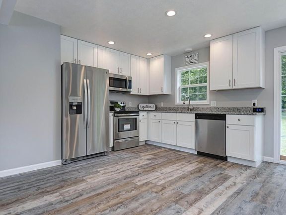 Can you say NEW, NEW and N E W!! Seller has painstakingly gone over every square inch of this 3BR, 2BA charmer and thoughtfully transformed it into your next DREAM HOME! Quality finishes and craftsmanship you would expect in a $200K and up home for LESS THAN $130K. BRAND NEW Low E Argon gas (fully wood-encased) tilt-in windows, NEW 6-panel white doors and trim throughout, including patio door and insulated garage door. Striking vinyl plank waterproof flooring and freshly painted walls all throughout the home! An AMAZING kitchen with dramatic floor-to-ceiling white cabinetry adorned w/brushed nickel hardware and granite countertops w/stainless undermount sink completed by a brushed nickel pull-down spray faucet. ALL NEW Stainless Steel Kenmore appliances, including side-by-side FRIG STAY! Fabulous Coffee Bar/Buffet Area, ideal for entertaining guests! The hall bath offers granite countertops, while the 2nd full bath features a large walk-in shower! Ceiling Fans in all bedrooms and living area, NEW plumbing and light fixtures throughout and outlets galore, allowing you many decorating options. The exterior features ALL NEW exterior Hardie board cement siding painted in a pleasing soft gray color, NEW soffit, front sidewalk and driveway! BRAND NEW Central AC Unit, 40 gallon hot water heater, electrical service panel and MUCH MORE! Enjoy the beautiful views of your large backyard and neighbor's park-like setting from your kitchen window! Located on a quiet street! Call Today for your Private Showing!