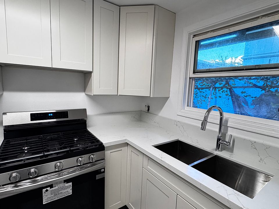 Private room with own bathroom and private entrance at back of the home. Shared newly renovated kitchen with new cabinets, counters, paint, electrical, refrigerator and gas range oven. Assigned parking available at a fee of $100 per month. Three to Twelve months lease term at $1200 per month plus utilities divided amongst roommates