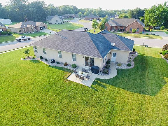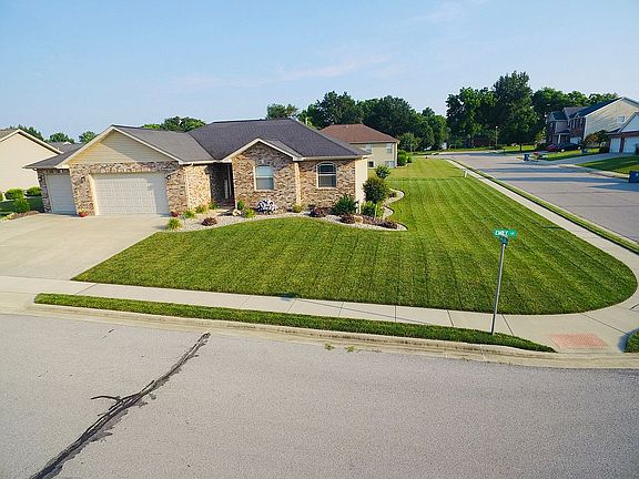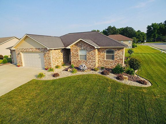 Enjoy the country setting of this beautiful brick front home located on a large corner lot in the Wildwood Estates subdivision. The landscaping is completed around the entire house. Modern open floor plan with cathedral ceilings. All wood maple cabinets with crown molding, dovetail drawers, and full extension soft closure hardware. The stainless steel kitchen appliances are included with this house (refrigerator, dishwasher, microwave, range, and garbage disposal). Spacious three-car garage with service door back patio. Master bedroom with a walk-in closet. The master shower was just remodeled with large tiles, cast iron base, and glass doors. Both bathrooms have back saver vanities. Oil rubbed bronze light fixtures and door hardware. Full basement with daylight windows and plumbed for 3rd bath. Lifetime warranty Polycoat on the basement walls. Over sized brick. Brand new A/C unit. This house is close to the city park/pool and is 20 minutes away from Scott Air Force Base.