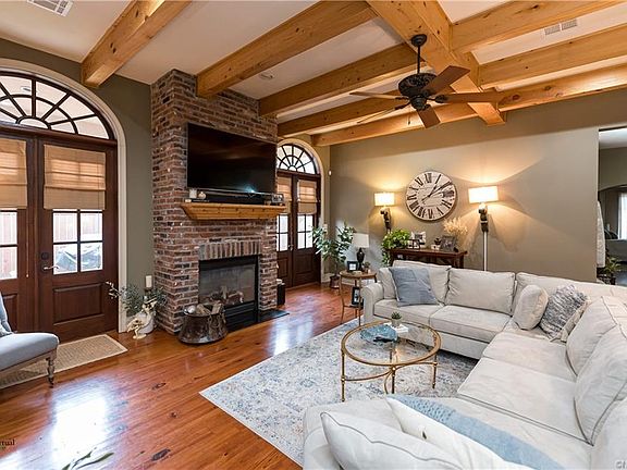 This home will WOW you! New Orleans style home with wrought iron entry gate courtyard and balconies off upstairs bedrooms and gameroom. Inviting entry with 8ft Mahogany doors leads to formal dining room with beautiful antique heart of pine flooring, open kitchen and family room with pretty beams and remote master. Additional bed down, 2 bedrooms, 2 baths upstairs. So many extras in this beautiful home!