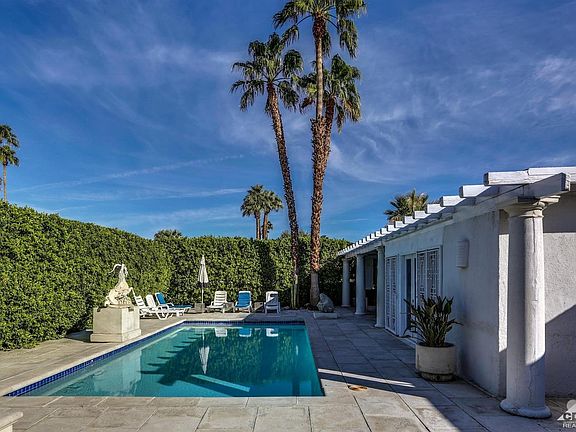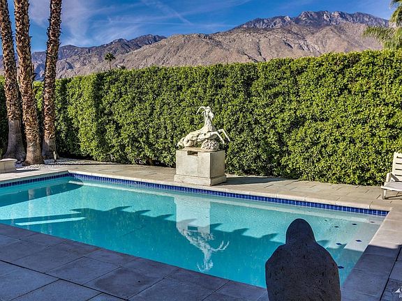 Albert Frey, frequently referred to as The Father of Modern Architecture in Palm Springs, designed this Unique, Extremely Attractive house in the Architecturally rich area between El Mirador and Tachevah,. Built in 1946 this Concrete and Glass House has 3 bedroom and 3 baths. The Living, Dining Room is Large and and Relaxing, The Fireplace, one of the focal points, has a Concrete Mantle, the Floors throughout the Proprerty, outside too, are Large Concrete Tile, The outdoor Benches, Seats and Tables in Atrium are Concrete, the Counters in Kitchen and Bedroom are concrete, IT IS A UNIQUE House. The West Facing Living and Master Bedroom have banks of Single Light Doors, with Breathtaking Western Mountain Views. Just Newly Plastered Pool is in Front and Completely Private, Outdoor BBQ area, Several Outdoor Seating Private Spaces, Needs a bit of TLC here and there but it is Amazing and Smashing as it sits.