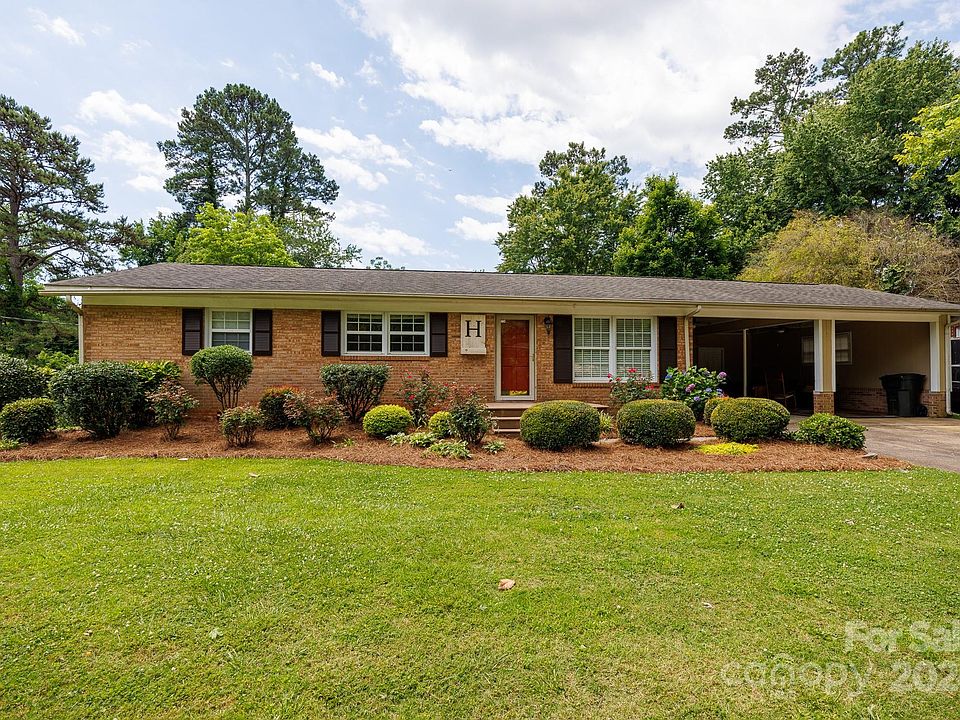 Don't pass this one by! A lovely landscaped yard showcases off this home from first view. Inside you'll find beautiful kitchen cabinets with granite counter tops, eat in area and hardwoods. Great room with gas log fireplace and built in bookshelves. Large deck and a patio with pergola, detached garage in back and a 2 car attached carport. Sold as is.