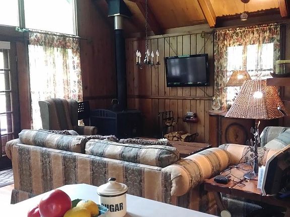 Beautiful chalet with no maintenance cedar inside and hardwood floors. Exquisite hand picked furnishings will make you feel right at home. Everything was picked with an artistic flare to accent this home. Being sold fully furnished and ready for you to move in. Free standing wood burner will warm you on those cold winter nights. Did I mention there was also an outdoor wood fired sauna that seats 6 people? Come see it for yourself before it is gone.