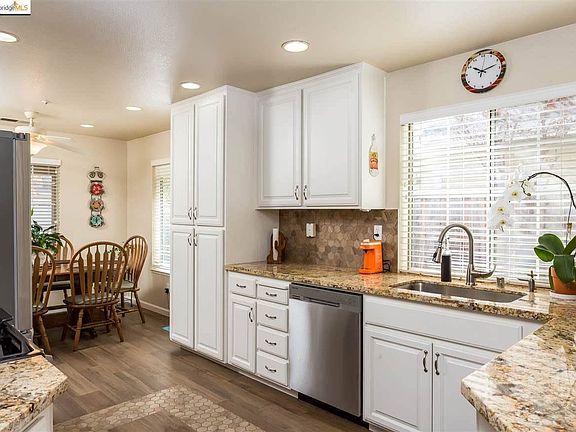 PAID SOLAR Welcome home to this beautifully maintained single story home on a quiet court with great neighbors! A large inviting front porch greets you with ample room for entertaining year round. Home is updated with beautiful white cabinets and upgraded flooring throughout. Floorplan feels light and bright with vaulted ceilings and recessed lighting. Newer heating and air conditioning and tankless water heater. The SOLAR is OWNED!!! All bedrooms have walk in closets. Tranquil backyard offers great space with loads of privacy. Great commute location close to schools, parks, shopping, freeways, vasco and ACE transit. Don't wait to make this home your own!