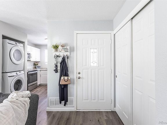 Located in Quail Run Condominiums, this ground-level unit has been beautifully remodeled! As you enter the open-concept living/kitchen space, you'll notice abundant natural lighting from the sliding glass door to your covered patio. The living room has tons of storage, with two large closets for your convenience. The kitchen is well-equipped, featuring stainless steel GE appliances, a full-size Whirlpool refrigerator, a stacked Samsung washer/dryer, and ample cabinetry. The primary suite features an airy bedroom with built-in shelving, and an en-suite full bathroom with an updated solid-surface countertop vanity, and tub/shower with premium hardware. Low-maintenance LVP flooring throughout makes cleaning a breeze! The covered patio is a great place to enjoy a morning coffee or soak in the afternoon sun, and features an extra storage closet with 10' ceilings. This home has a dedicated exclusive-use parking space in the outdoor lot, as well as access to plentiful guest parking throughout the complex. The Quail Run Condominium Association provides water, trash, recycling, maintenance, tennis court, pool, clubhouse, and fitness center - all included in your HOA dues! Enjoy nearby parks, trails, entertainment, dining, and schools. Close proximity to Buckley Space Force Base, and nearby to I-225, I-70, and E-470 allowing for quick commutes to Denver, DIA, and more.